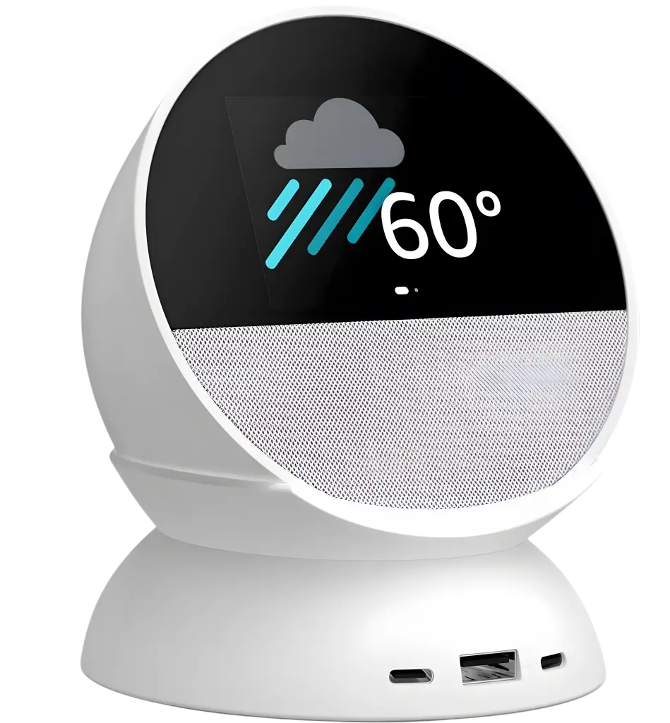 Meet the perfect companion for your desk or nightstand. The brand new 2024 Echo Spot paired with its custom charging stand.