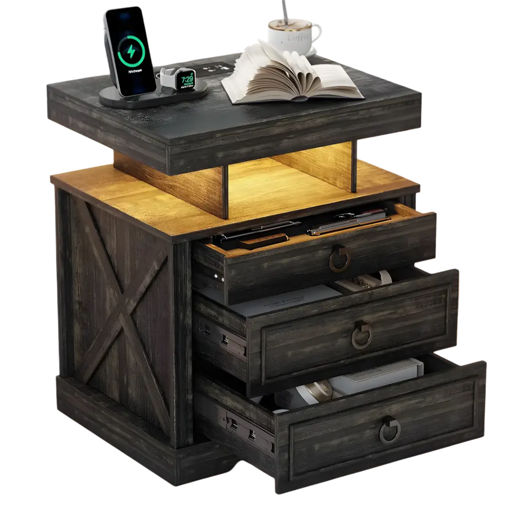 Simplify your space with this multi-function LED Nightstand. It’s designed to be the only thing you need next to your bed or sofa, providing motion-sensing light, ample power for your gadgets, and a stylish surface for your essentials.